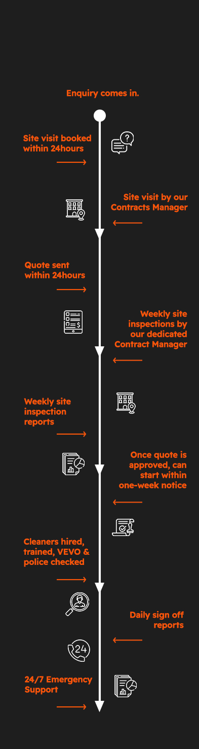 Scenario: CleanKings took over Kickon Group- Previously (Open Arms Hospitality & Collective Heads Venues) commercial cleaning contract in 2018 and the cleaning operation was outsourced to another commercial cleaning company at the time. Directors were comfortable with the cleaning standards, but they were open to seeing what value CleanKings can offer.