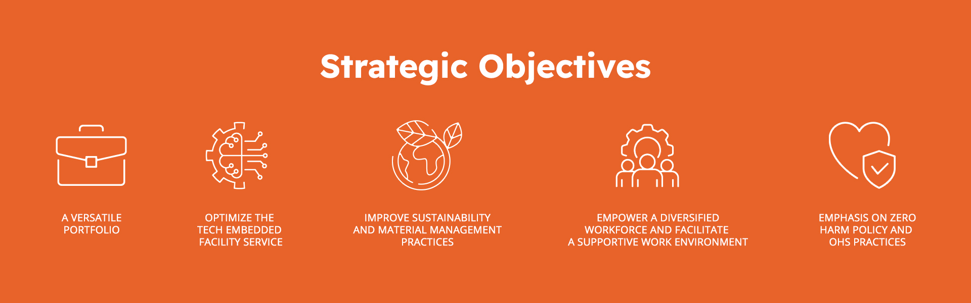 We identify and respond to material sustainability issues to successfully deliver on our company strategy and create value. Having regular, open, and honest engagement with our stakeholders helps us identify, understand, and prioritize the sustainability issues, and set feasible sustainability targets and opportunities that matter most to our stakeholders and to our organization. CleanKings Facility Services & sustainability framework is shaped by our four pillars: Quality, Human Resources, Communication, and Safety.